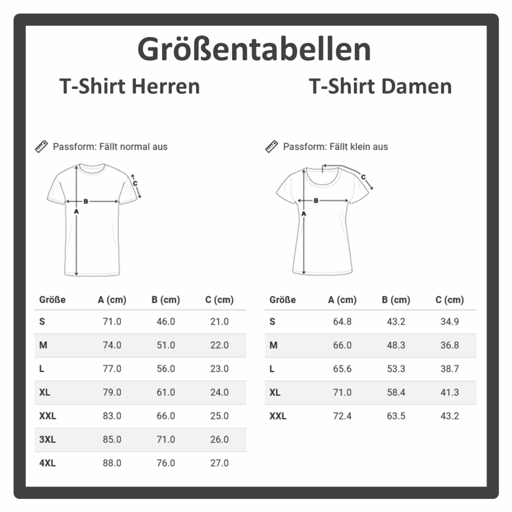 T-Shirt-Übersicht und Größentabellen